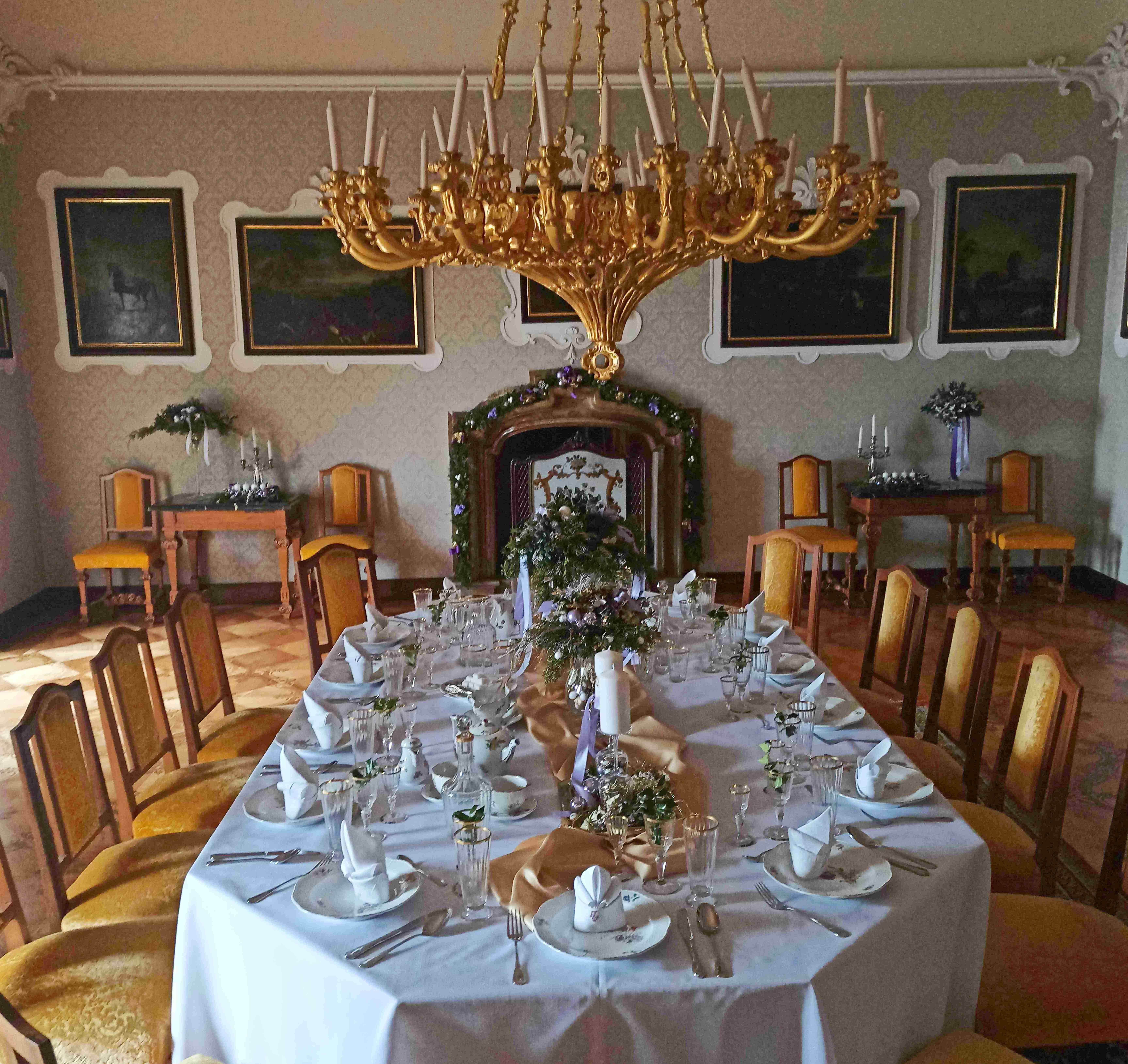 Vánoce 30.-31. 12. 2023 10:00-15:00 hodin prohlídky vánočně vyzdobených interiérů zámku s povídáním o Vánocích šlechtických rodin.
